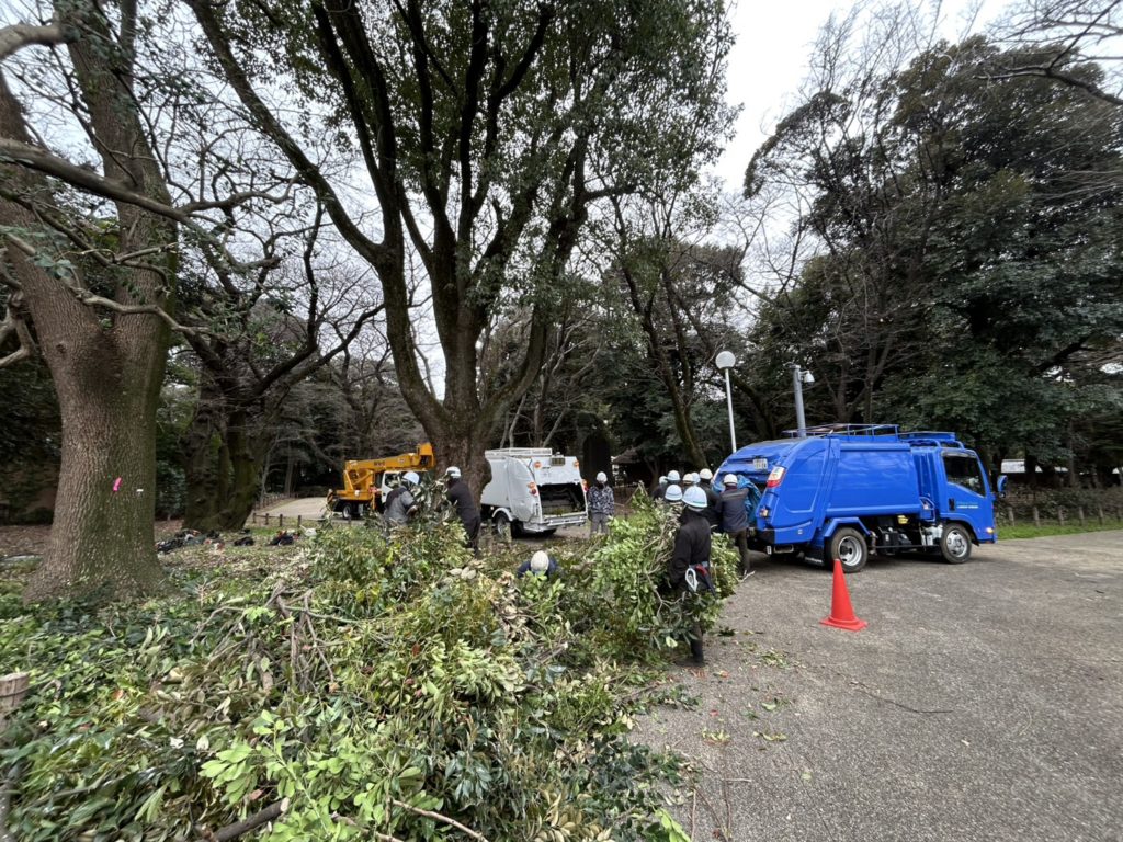 先日完了した「上野国立博物館」と「東京文化財研究所」の枝下ろし剪定作業の画像です。